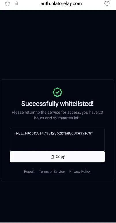 • Copy the free key (Valid for 23 hours and 59 minutes).
